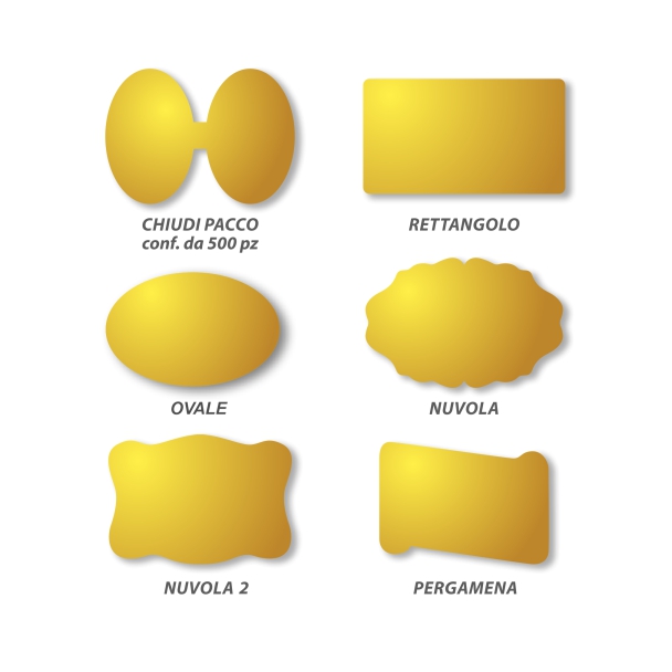 Disponibile nelle forme Pergamena, Chiudi pacco, Rettangolo, Ovale, Nuvola e Nuvola 2