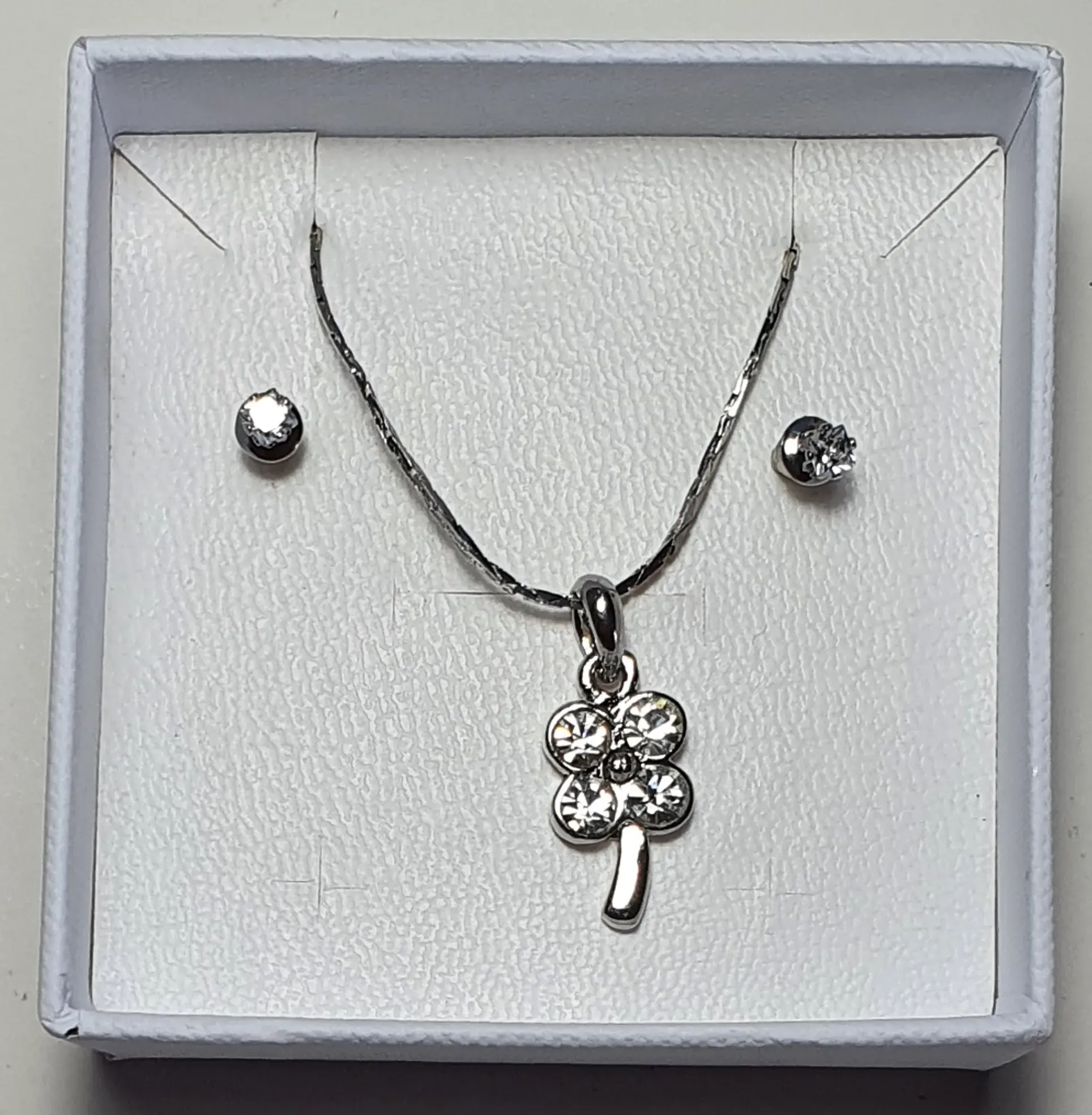 Ogni set di parure include collana e orecchini impreziositi da strass luminosi che donano un effetto scintillante e sofisticato. I modelli assortiti permettono di scegliere il set che più si adatta al proprio stile e alla propria personalità, mentre la scatolina elegante rende il prodotto ancora più speciale, perfetto anche come idea regalo.
