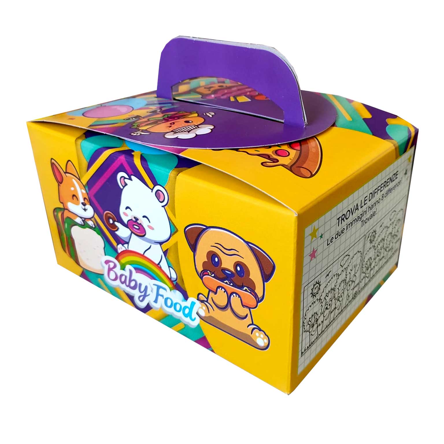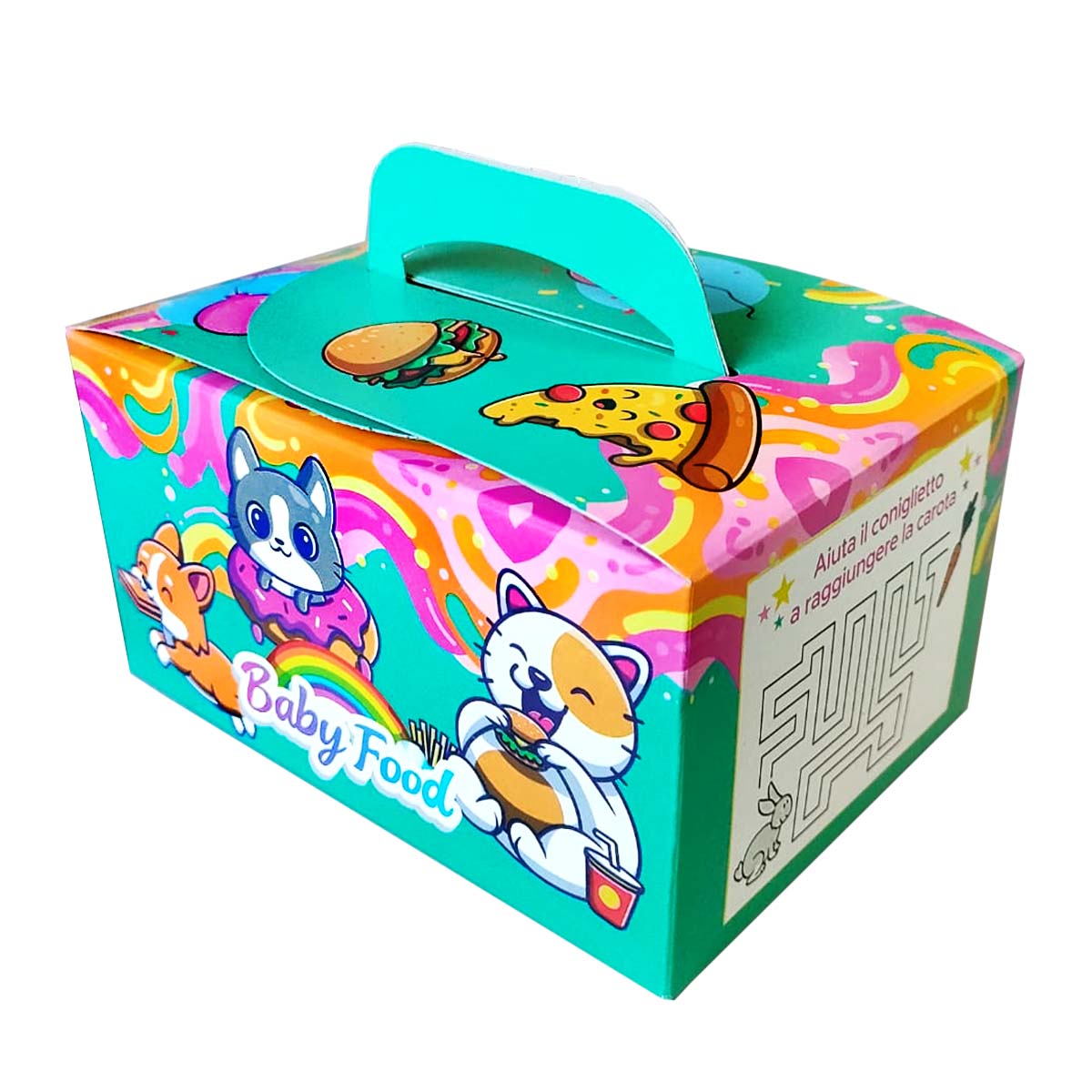 Rendi ogni pasto un’esperienza speciale con le Scatole da Asporto per Bambini! Perfette per ristoranti, pasticcerie, eventi e feste di compleanno, queste scatole non solo contengono il cibo in modo pratico e sicuro, ma offrono anche un momento di intrattenimento grazie ai divertenti giochi enigmistici stampati sulla superficie.