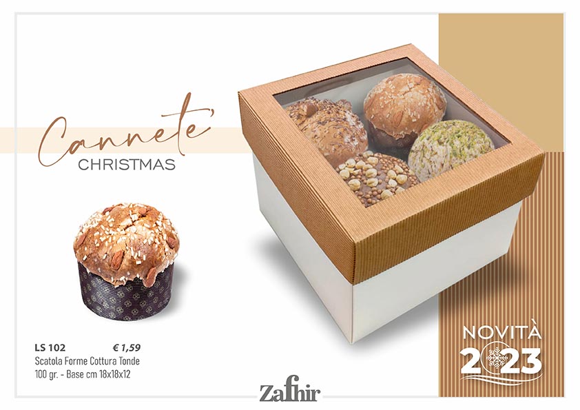 Elegante e pratica, questa scatola è pensata per contenere 4 panettoncini realizzati con forme cottura tonde da 100 g (vendute separatamente). Disponibile in due formati per adattarsi alle diverse esigenze: