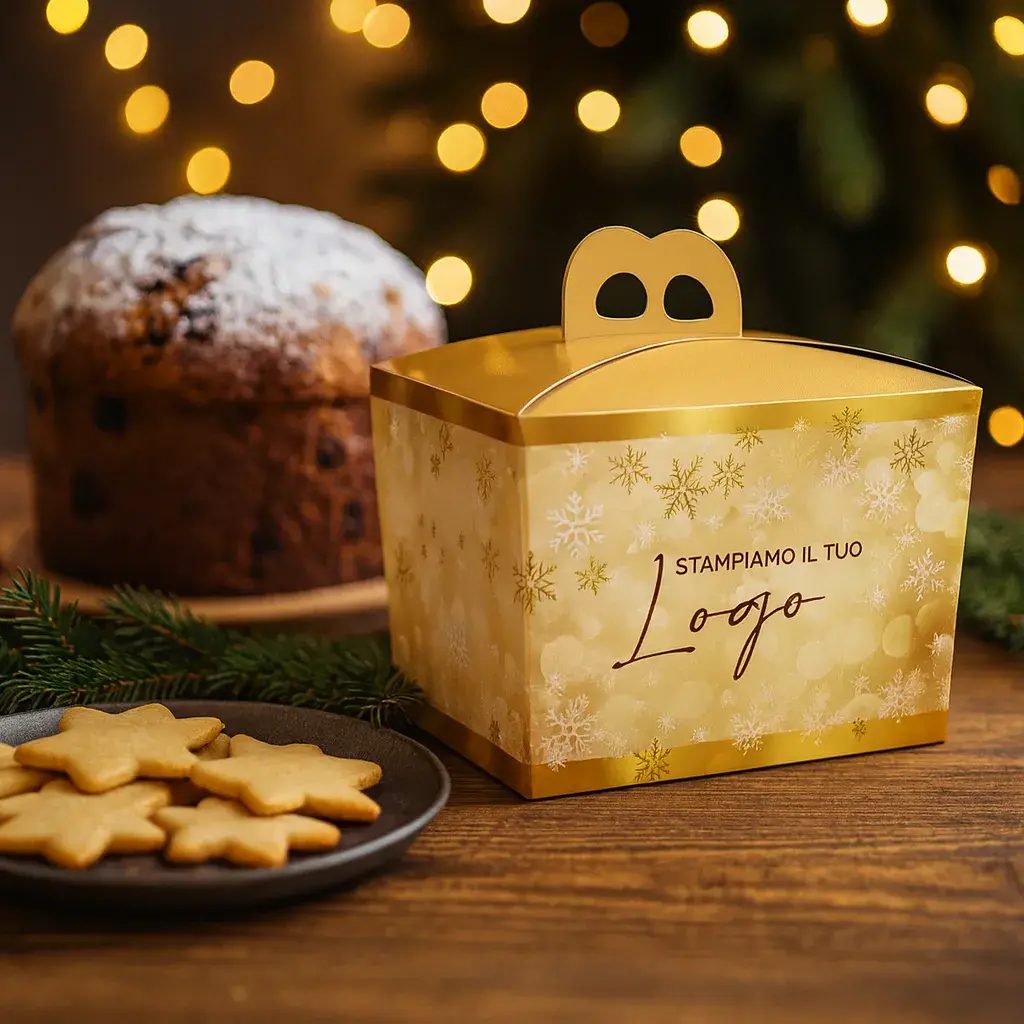 Questa scatola porta panettone basso è la scelta perfetta per i tuoi panettoni, ma anche per dolci e regali natalizi, offrendo la giusta protezione e un aspetto festoso. Non solo pratiche, ma anche un elegante mezzo per esprimere il tuo brand o il tuo augurio natalizio.