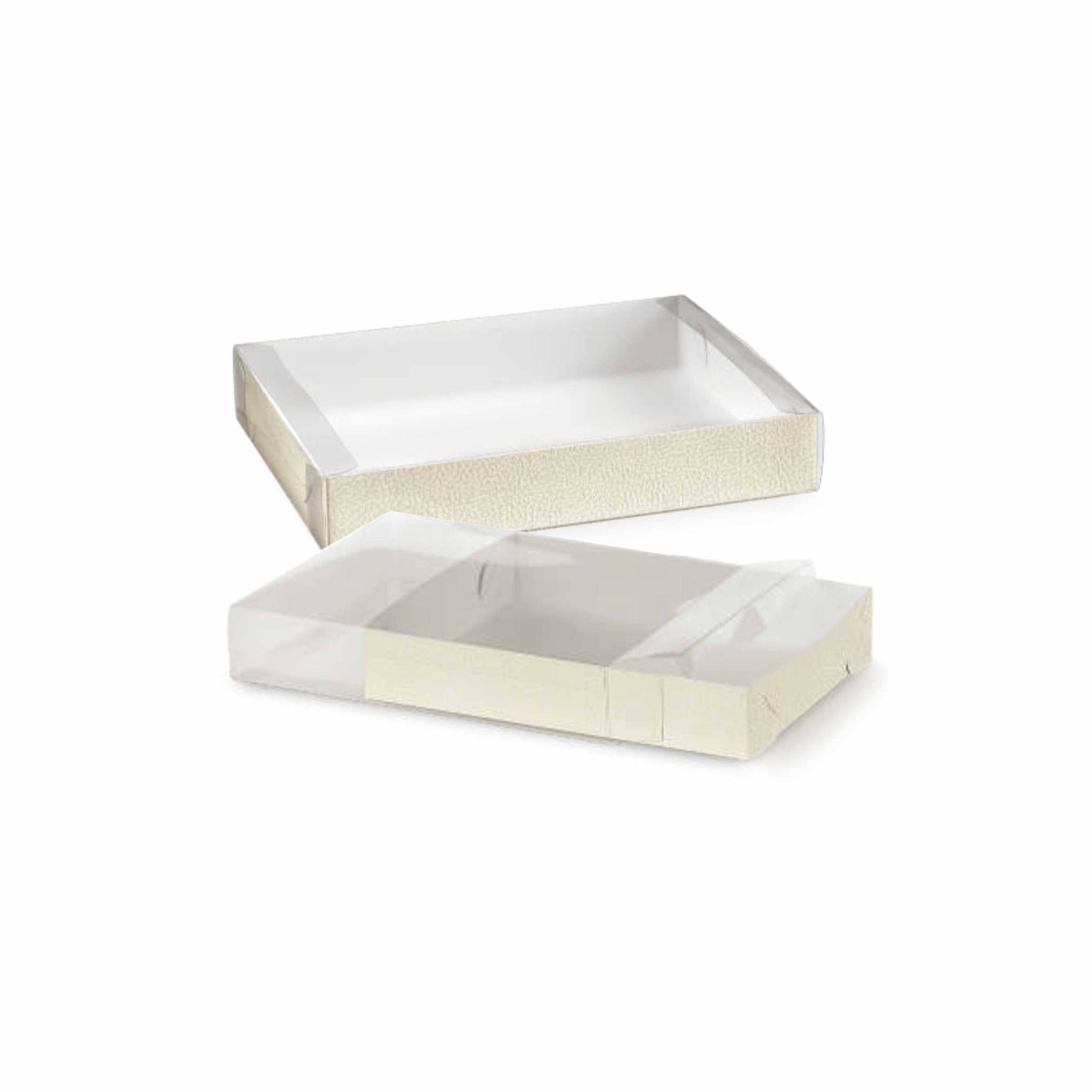 Coniuga praticità e presentazione elegante con l’astuccio con vassoio: perfetto per articoli regalo, oggettistica, prodotti artigianali, bijoux, dolci, cosmetici e gadget. Il vassoio interno mantiene ogni elemento in posizione, mentre la struttura in PVC trasparente valorizza il contenuto con un raffinato effetto vetrina.