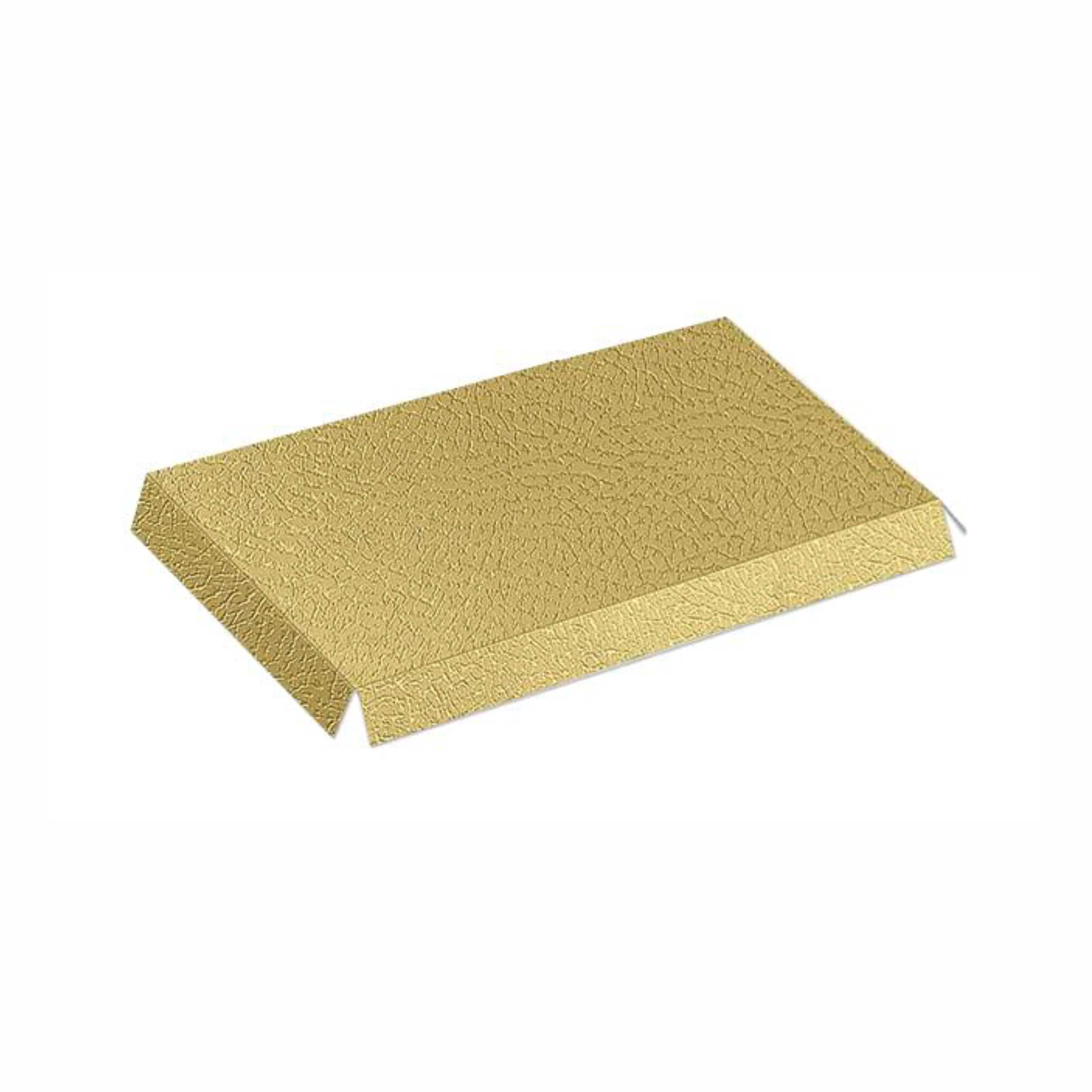 Il fondo rialzato in pelle oro è la scelta ideale per chi desidera un packaging elegante, stabile e valorizzante. Creato per essere abbinato perfettamente alla valigetta in PVC trasparente, dona al contenuto un aspetto raffinato e ordinato, perfetto per prodotti da regalo, pasticceria o confezioni gourmet.