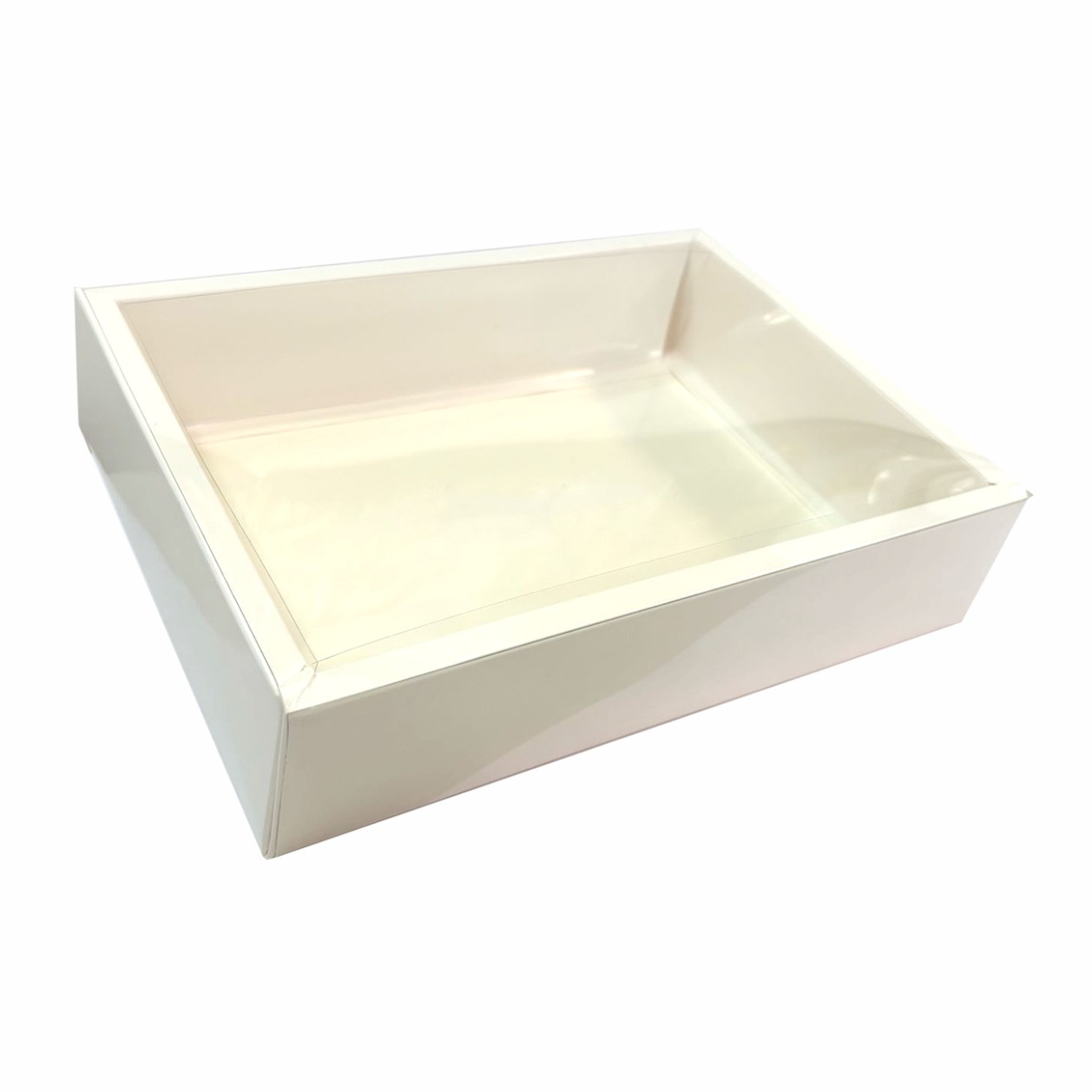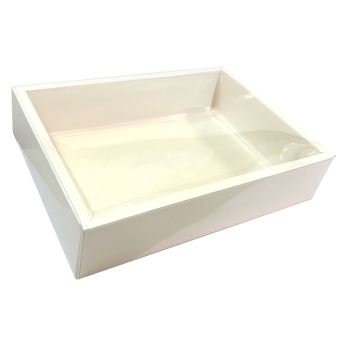 La scatola bianca con coperchio in PVC è l’ideale per chi cerca una soluzione elegante, resistente e pratica per confezionare articoli di vario tipo. Con dimensioni di 17×23,5xh 6 cm, è perfetta per contenere prodotti come accessori, cosmetici, articoli da regalo o dolci. Il coperchio in PVC trasparente consente una visibilità completa del contenuto, aggiungendo valore estetico e funzionalità al tuo packaging.