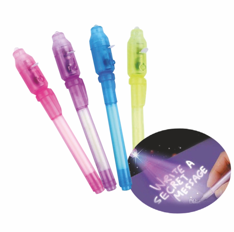 - Tecnologia LED UV: Ogni penna è dotata di un piccolo LED UV che permette di rivelare messaggi invisibili scritti con l’inchiostro speciale. Scrivi qualcosa di segreto e fallo “svelare” solo con la luce UV!