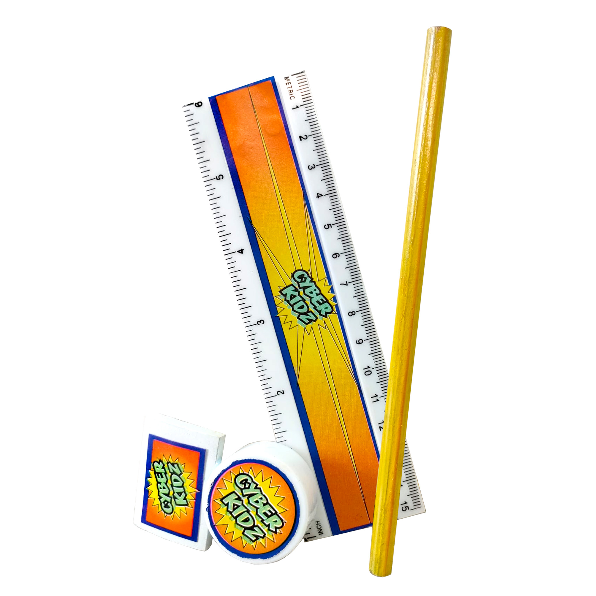 Confezione con Righello, Matita, Gomma e Temperino – 15×5 cm