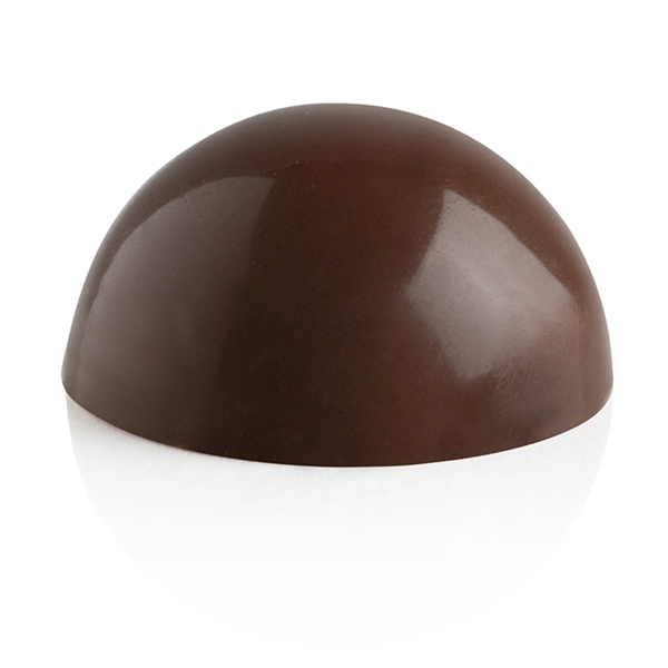 Questo stampo in policarbonato è ideale per la creazione di semisfere di cioccolato dal diametro di 48 mm, perfette per praline o decorazioni