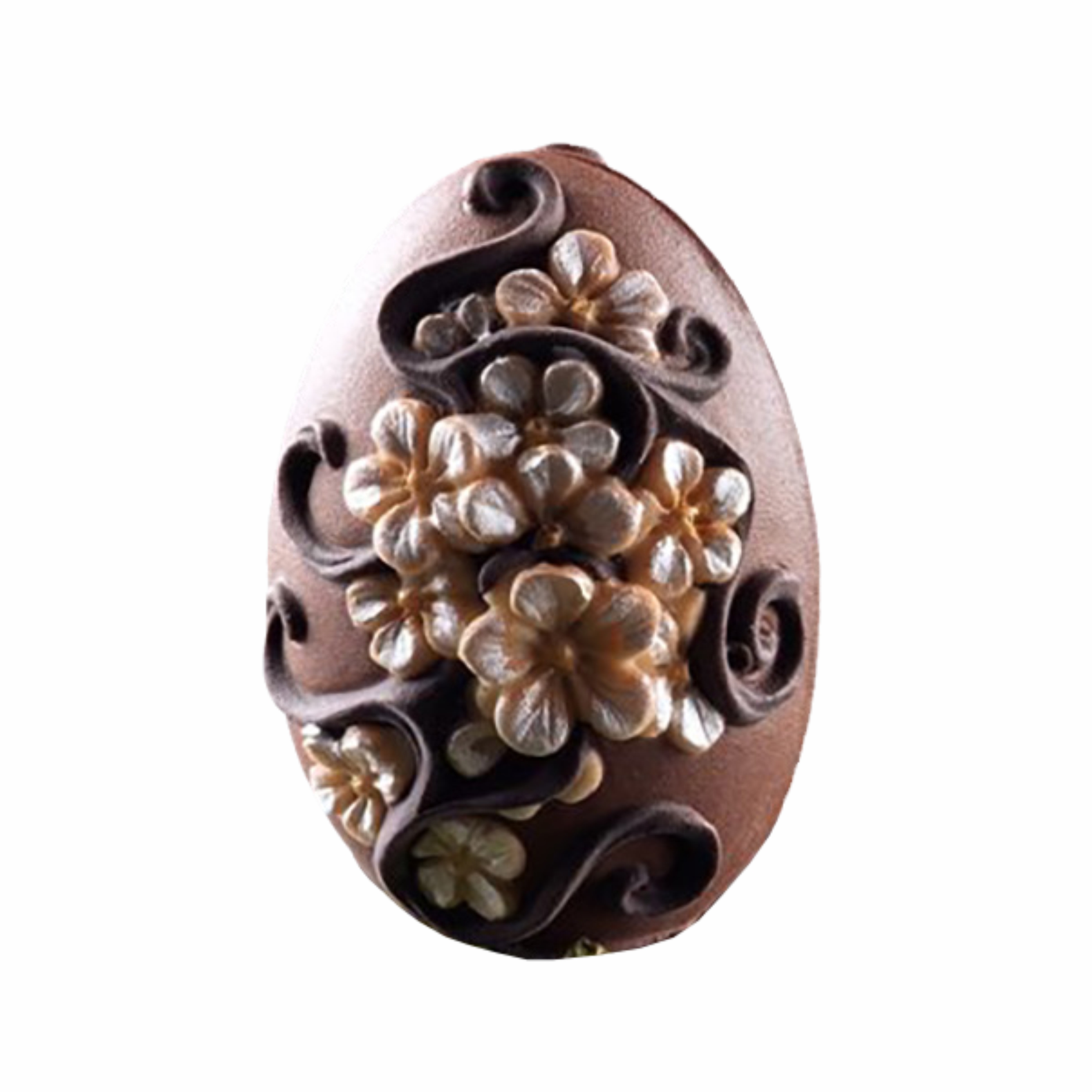 Questo stampo in silicone, denominato “Ovetto Non ti scordar di me”, è progettato per realizzare ovetti di cioccolato decorati con dettagli floreali, aggiungendo un tocco elegante alle tue creazioni pasquali.