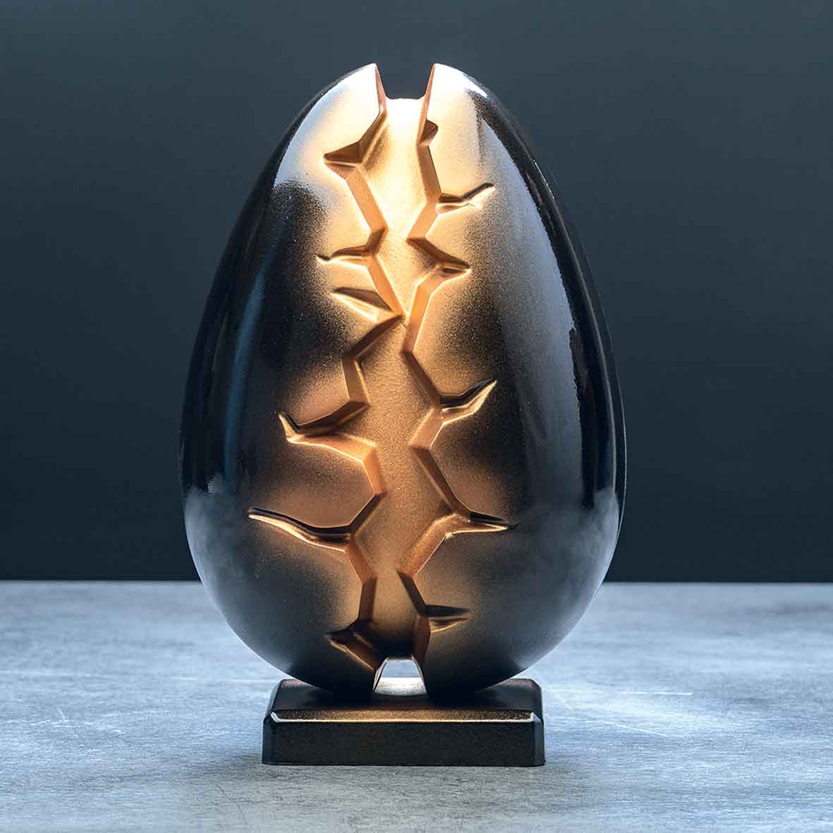 Lo Stampo Termoformato Tridimensionale “Abyss” è un prodotto di alta qualità progettato per la realizzazione di uova di Pasqua dal design unico e sofisticato. Le sue dimensioni sono 140×215 h mm, ideali per creare uova di cioccolato dal peso di 340 grammi.