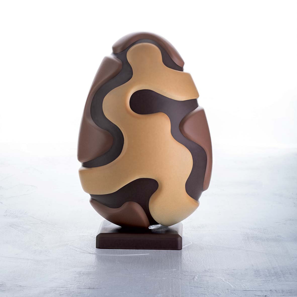 Lo Stampo Termoformato Tridimensionale “Flow” è un prodotto di alta qualità progettato per la realizzazione di uova di Pasqua dal design unico e sofisticato. Le sue dimensioni sono mm138 x 216 h , ideali per creare uova di cioccolato dal peso di 420 grammi.