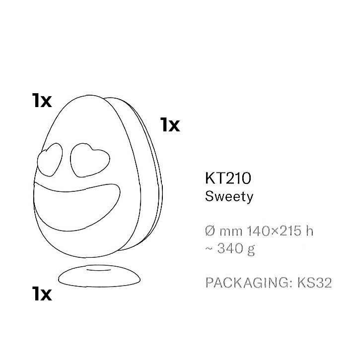 Dimensioni: Con una misura di mm 140 x 215 h, lo stampo è studiato per ottenere uova dal peso di 340 grammi, offrendo un equilibrio ideale tra estetica e quantità di cioccolato.